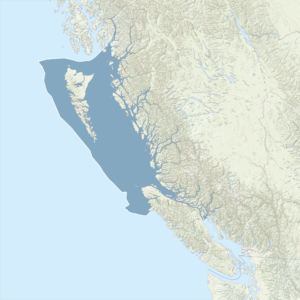 The Great Bear Sea, highlighted in blue, spans most of Northern BC’s coastline up to Alaska.