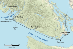 It was a big step from cruising the protected waters of the Salish Sea to the open waters of the Pacific Ocean. To reach Barkley Sound would require sailing past Victoria and through Race Passage to Juan de Fuca Strait and the 80-mile trek to Cape Beale, the entrance to the sound.
