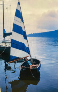 Ever entrepreneurial and practical, Hamish developed a roof rack with suction cups to carry the boat atop a car so that it could easily be brought to water anywhere. “I remember how Hamish often dragged two or three boats behind the car when he went on holiday,” said Mike. “It was his version of direct marketing and usually he’d sold these dinghies by the time the vacation was over.”