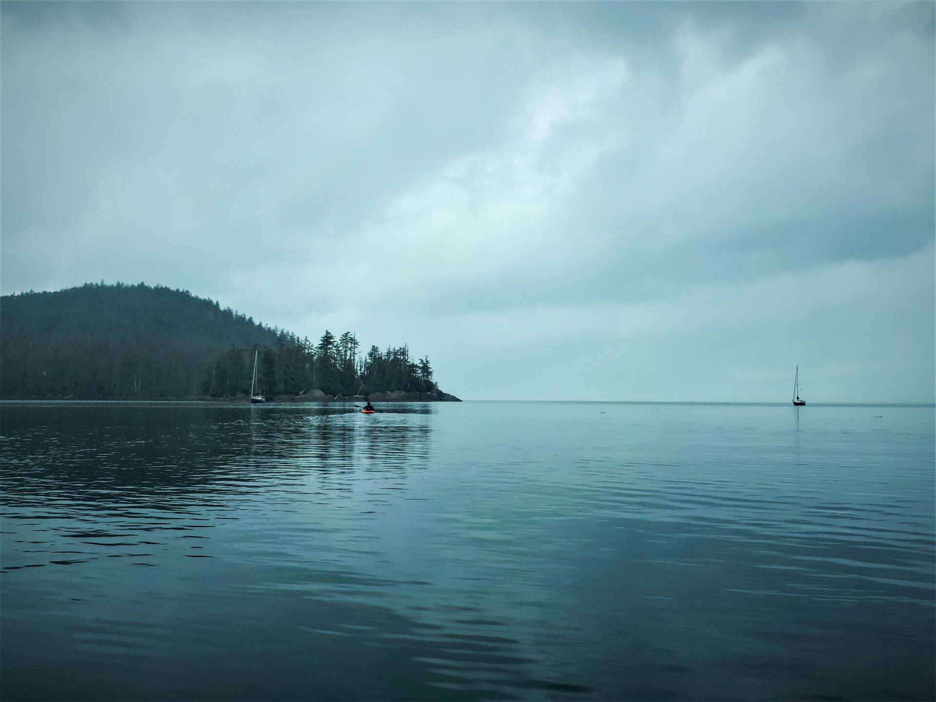We were one week into a trip through the Gwaii Haanas National Park Reserve in Haida Gwaii. The weather forecast warned of an impending southeasterly gale, so a few days earlier my partner Liam and I had staked out a spot in a well-protected anchorage with some friends in their sailboat, SV Skua. Echo Harbour, our anchorage of choice, was a small, cosy bay tucked into the east side of Moresby Island. The reviews that we had read called it “the best anchorage in the area” and several locals had confirmed that it was usually a good spot in a blow. The bay was accessed through a narrow, north facing channel and surrounded on three sides by steep, substantial hills. The forested peaks towering above us exuded a feeling of strength and security. As the gale began to build, with weather buoys reporting high winds and seven-metre seas in Hecate Strait, we sat comfortably at anchor. The two little boats swung one way and the other as gusts rippled through, but the wind that howled fiercely outside of the bay never reached us with its full strength.