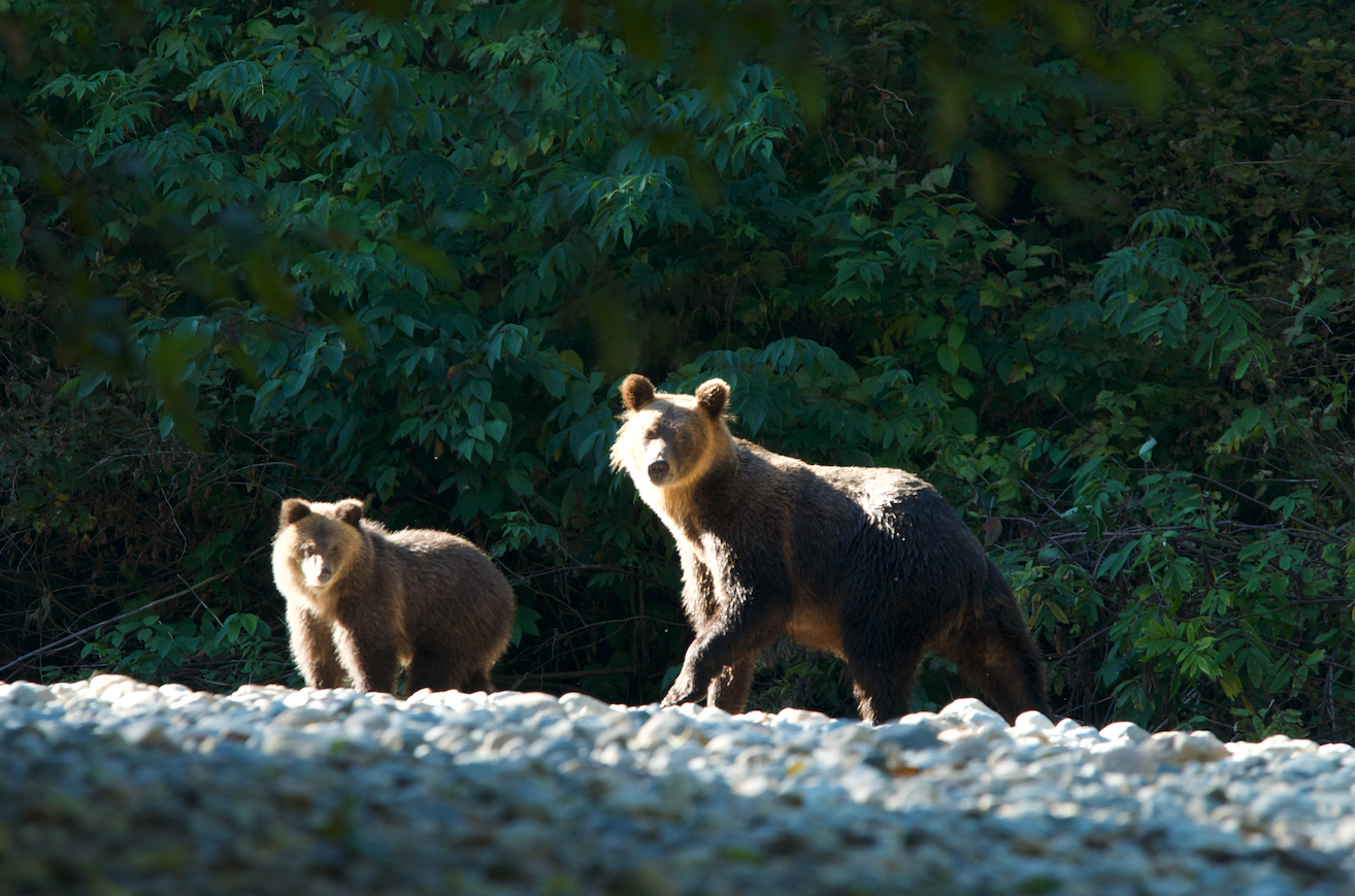 Our patience is rewarded by a mum and a fuzz ball of a yearling crossing the river. Just when we’re set to go again, two young bears exit the bush metres from our boat and start fishing in the pools. The bears gorge on salmon, and wanting dinner ourselves we’re more than pleased when they’ve had their fill and moved on, so we can head home too.