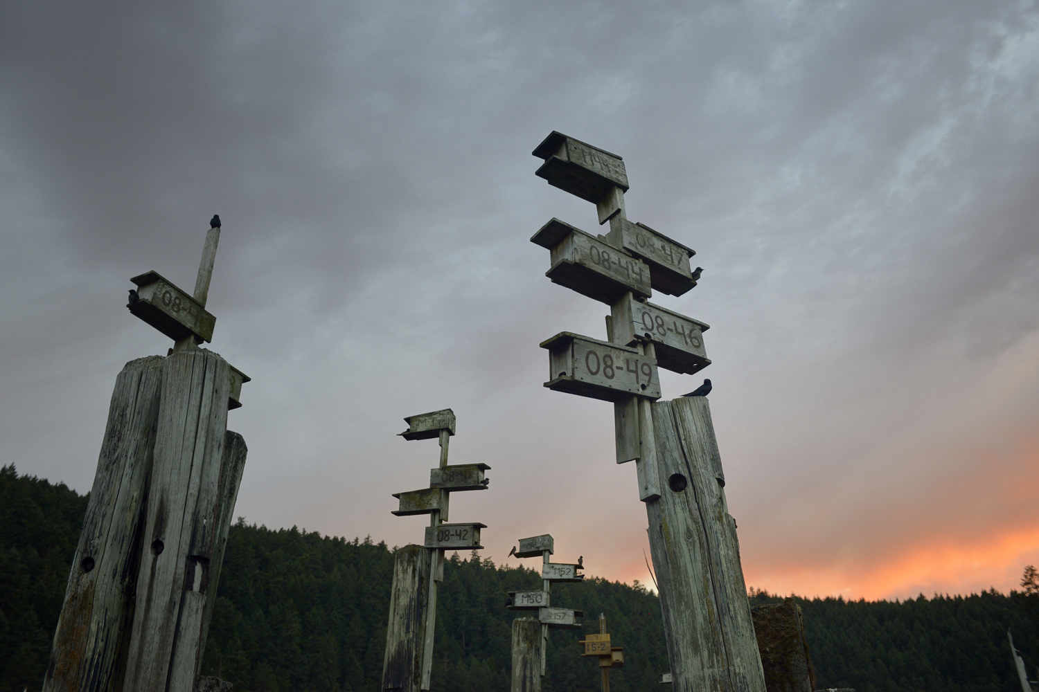 “The Purple Martin boxes are maintained by John Creviston and SeaChange staff. The initiative to bring back their dwindling numbers began with a campaign started in 2002 by the Georgia Basin Ecological Assessment and Restoration Society,” SeaChange executive director, Nikki Wright tells me. It seems it has been highly successful. First thing in the morning the lively birds love to spin on our wind vane. It’s fun to watch them shove each other off and then twirl in gay abandon, chattering their delight at full decibel. Not fun, though, when they start muting in my coffee.